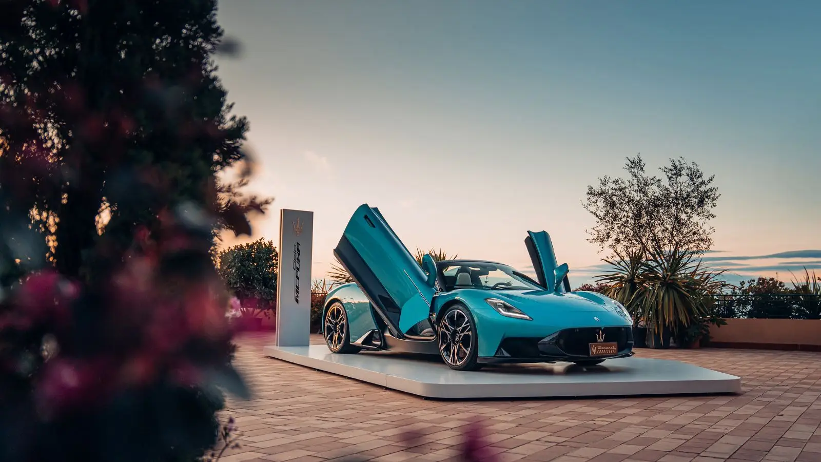 The GranCabrio takes center stage. Its soft top combines weaving and embroidery techniques and references the 100th anniversary of the Trident emblem. White and lime accents echo the visual language of tennis. At the same time, the model remains distinctive in its segment by offering both a combustion-engine version and a fully electric Folgore variant, which delivers 761 PS, accelerates from 0 to 100 km/h in 2.8 seconds, and uses a three-motor setup.