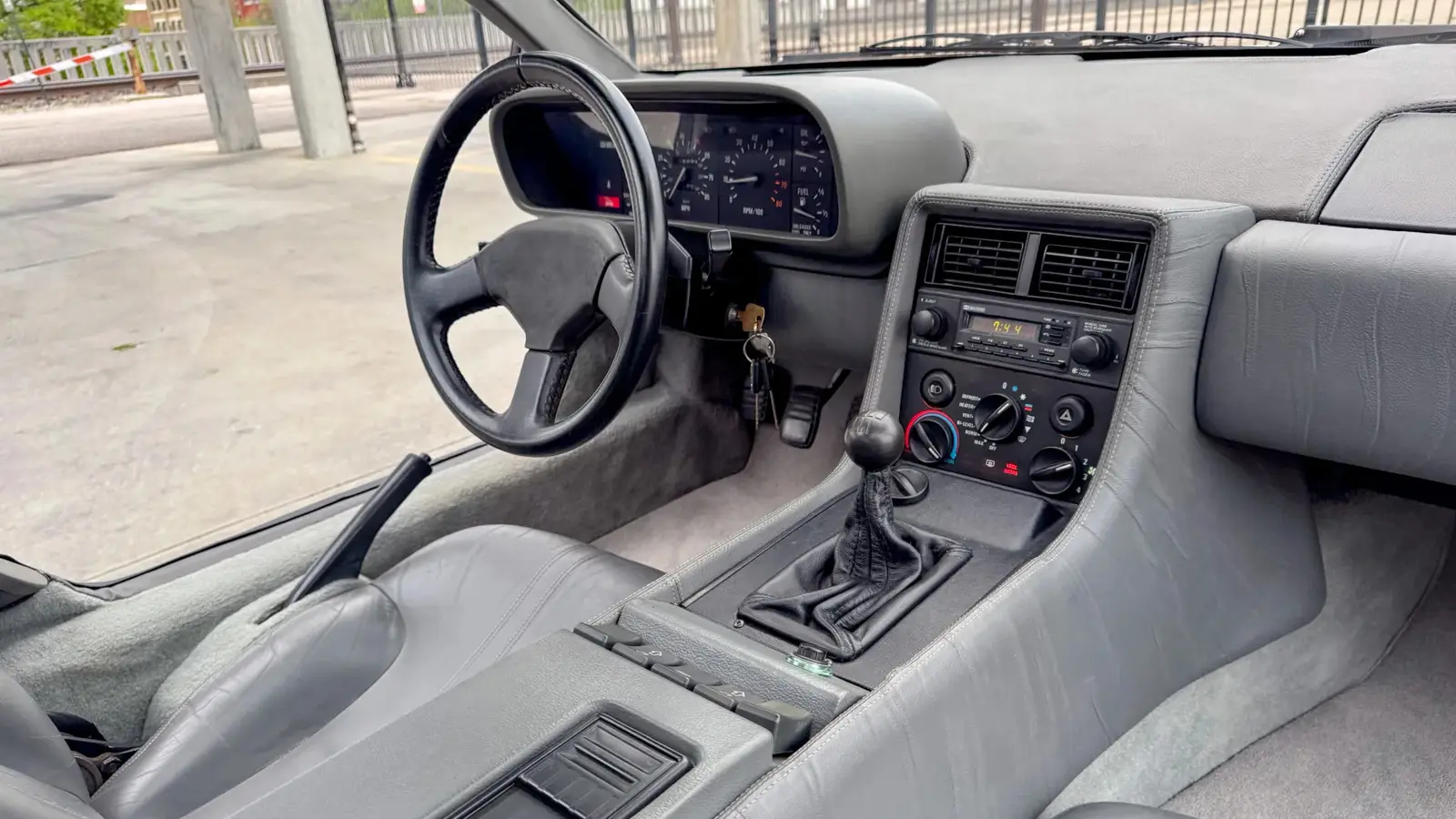 The car is equipped with a five-speed manual transaxle paired with a rear-mounted 2.85-liter V6. It has been owned by the current seller for approximately 20 years and retains the model’s defining features: unfinished stainless steel body panels, gullwing doors, a gray leather interior, and staggered turbine-style wheels. Equipment includes air conditioning, power windows, central locking, and a stereo system.