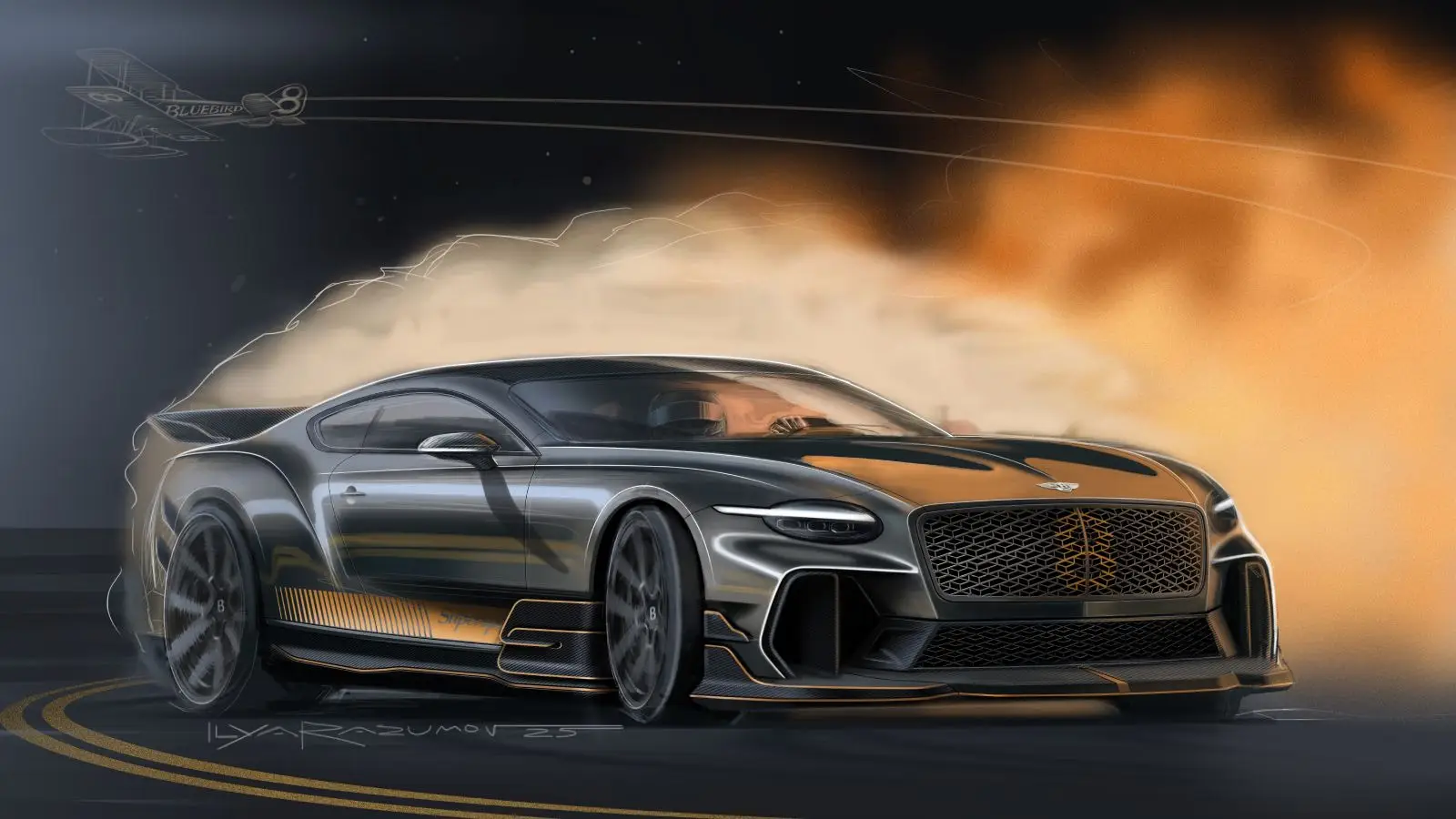 Weight reduction became a central theme of the project. With the removal of the rear cabin, reduced sound insulation, the addition of a carbon-fibre roof, and the deletion of certain assistance systems, the Supersports becomes the lightest Bentley in more than eight decades. Aerodynamic development plays an equally important role: the largest front splitter ever fitted to a Bentley, carbon dive planes, a rear diffuser, and a fixed rear wing together add more than 300 kg of downforce compared with the Continental GT Speed.