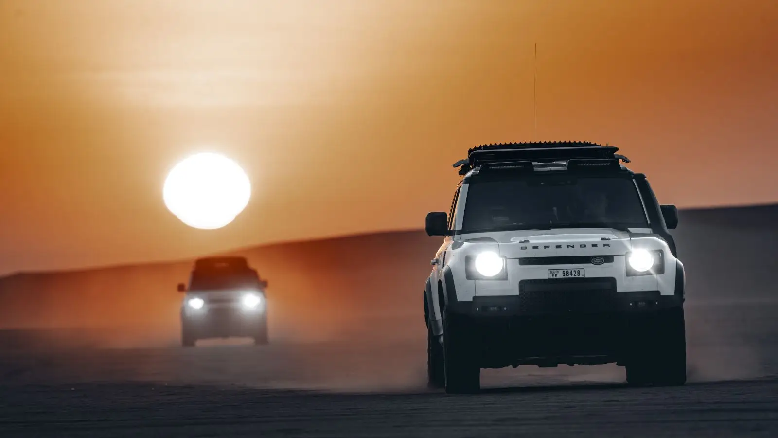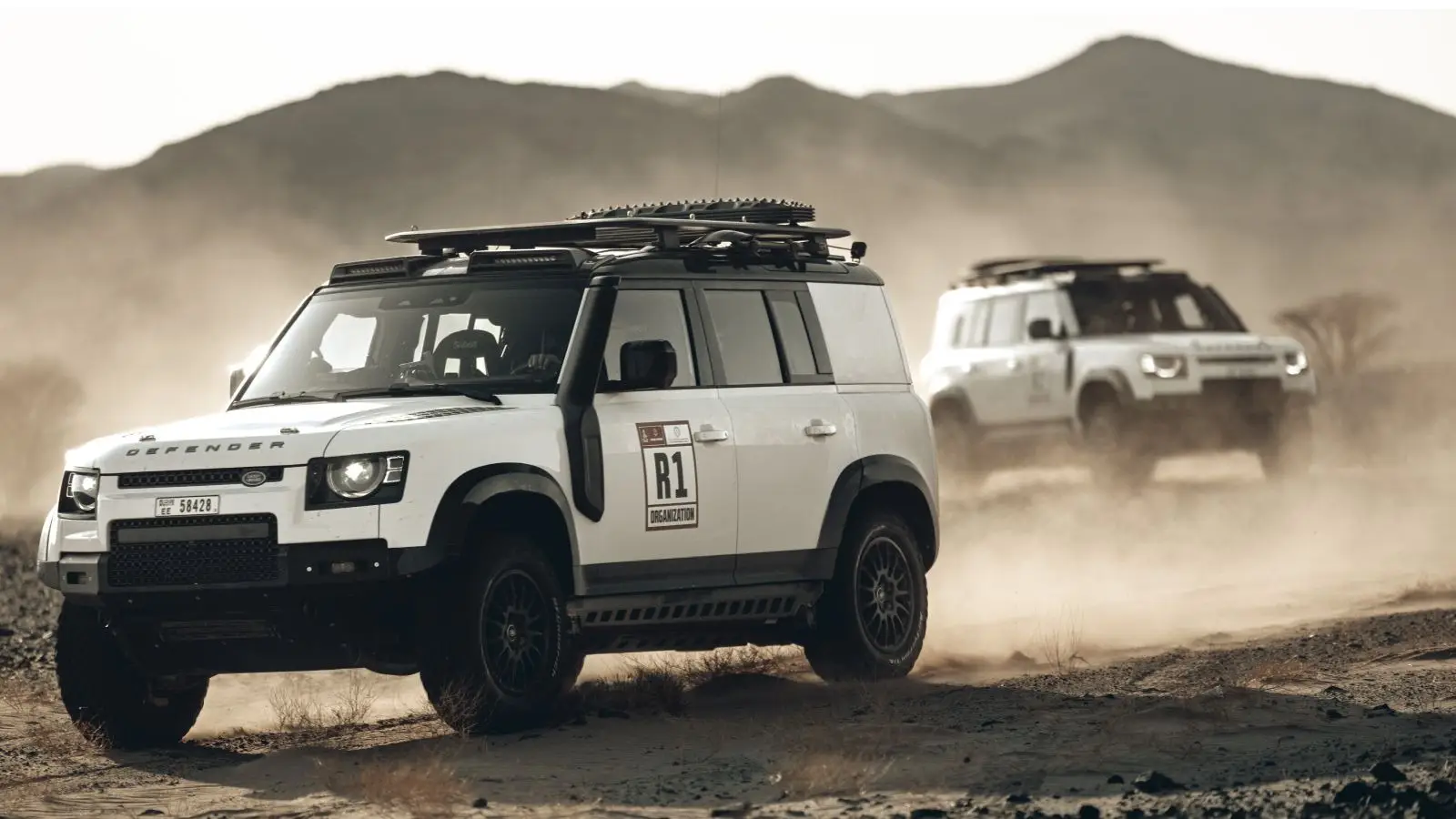 The reconnaissance vehicles are based on the Defender 110 powered by the P300 engine and have been extensively adapted for prolonged use in extreme environments. Each vehicle features a full roll cage, a three-seat layout with competition harnesses, reinforced suspension and underbody protection, as well as all-terrain wheels. Additional equipment includes an auxiliary fuel tank for extended range, roof-mounted stowage, recovery tools and on-board systems designed to support long periods of remote desert operation.