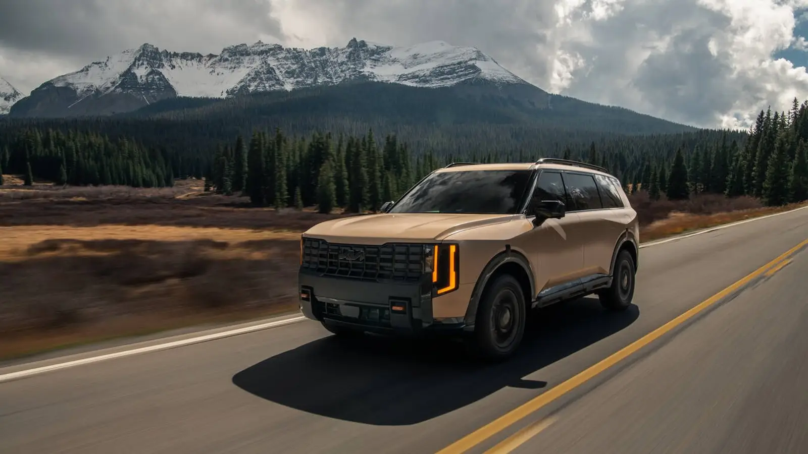 Visually, the Telluride stays true to its boxy, muscular identity. Dimensions grow slightly, with a longer wheelbase but familiar proportions. The X-Pro stands out as the most rugged interpretation, featuring over nine inches of ground clearance, all-terrain tires, an electronic limited-slip differential, recovery hooks, and dedicated terrain drive modes for snow, mud, and sand.