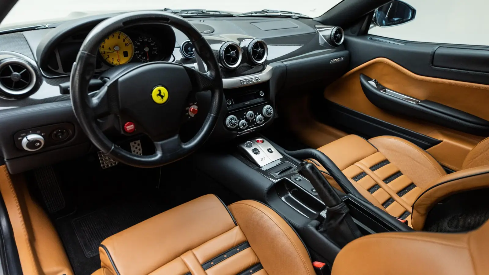Power comes from Ferrari’s 6.0-liter Enzo-derived V12, rated at 612 horsepower and 448 lb-ft of torque. Drive is sent to the rear wheels through a 6-speed F1 automated manual transmission, the same type of paddle-shift setup that defined Ferrari’s mid-2000s performance era.