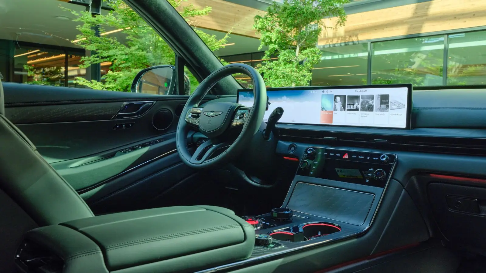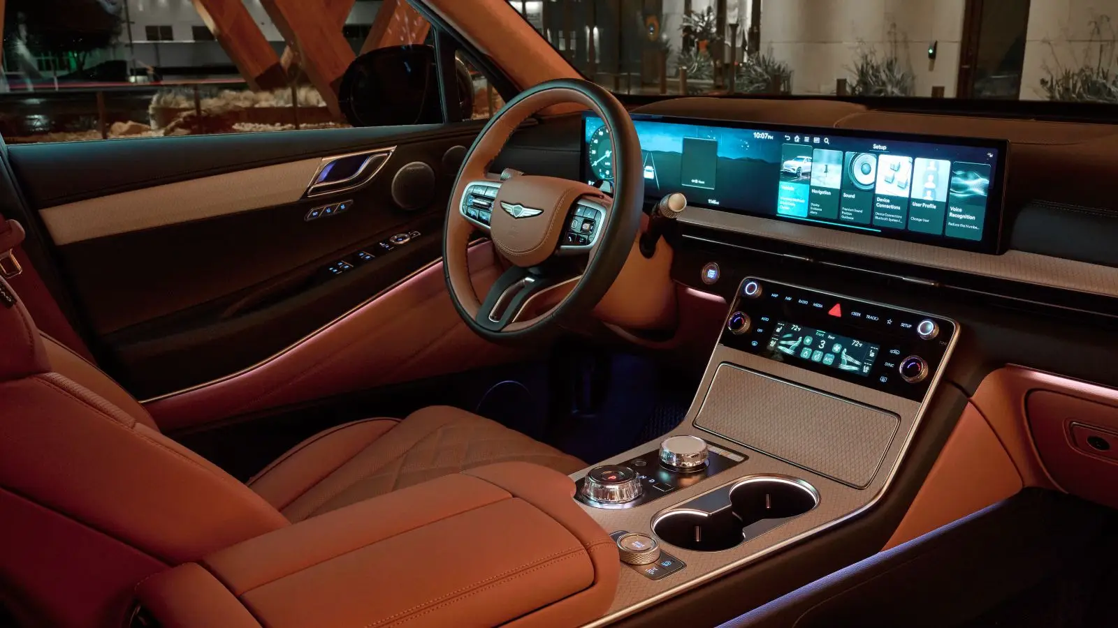 Technology plays a major role in the overall experience. The GV80 features a wide multimedia display with Apple CarPlay and Android Auto integration, wireless charging, USB-C ports and a head-up display. A digital rearview mirror is also included, reinforcing the model’s modern focus. Drive mode selection is handled through a rotary controller, offering Sport, Comfort, Eco and customizable settings, along with terrain modes for snow, mud and sand.