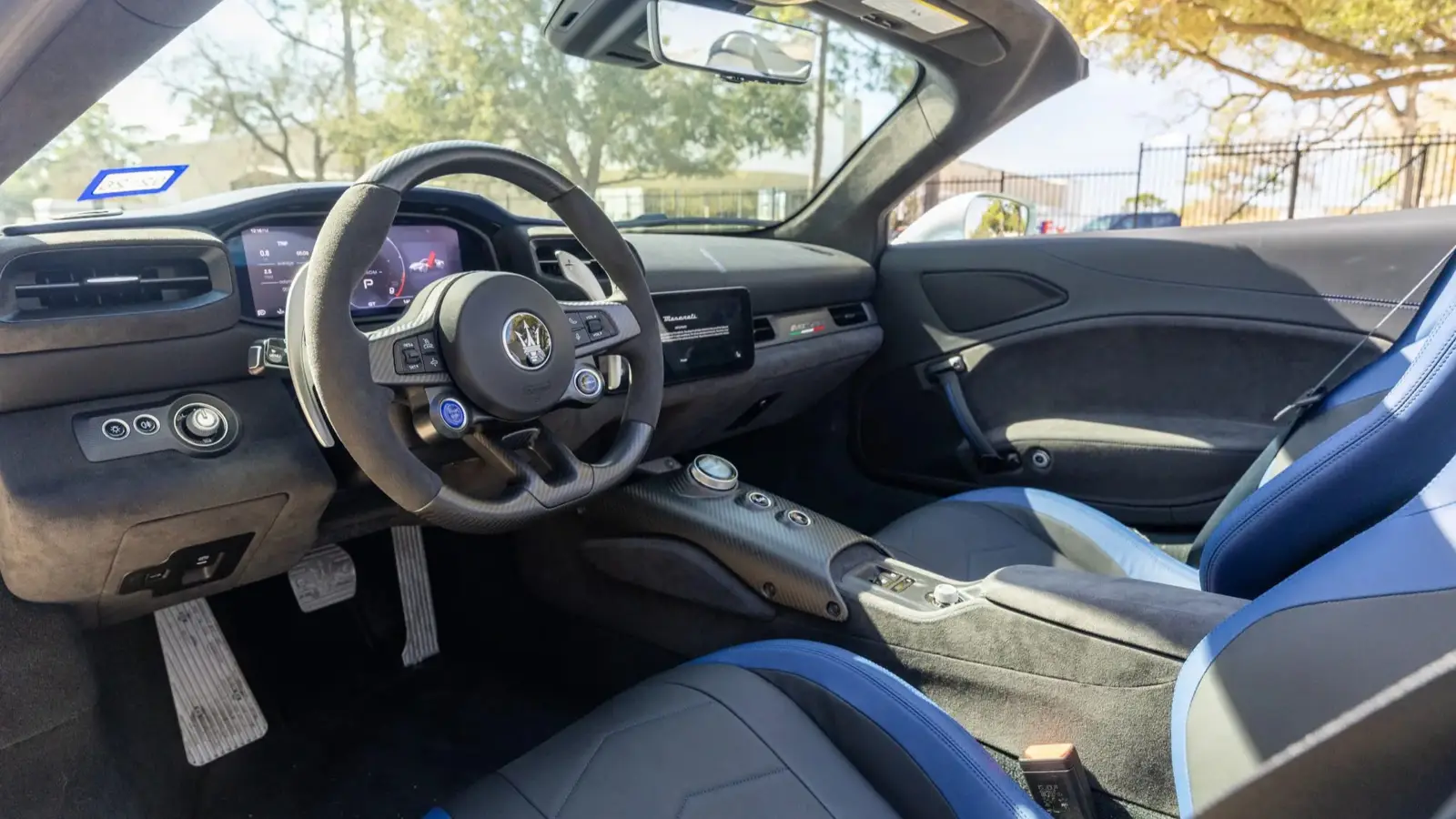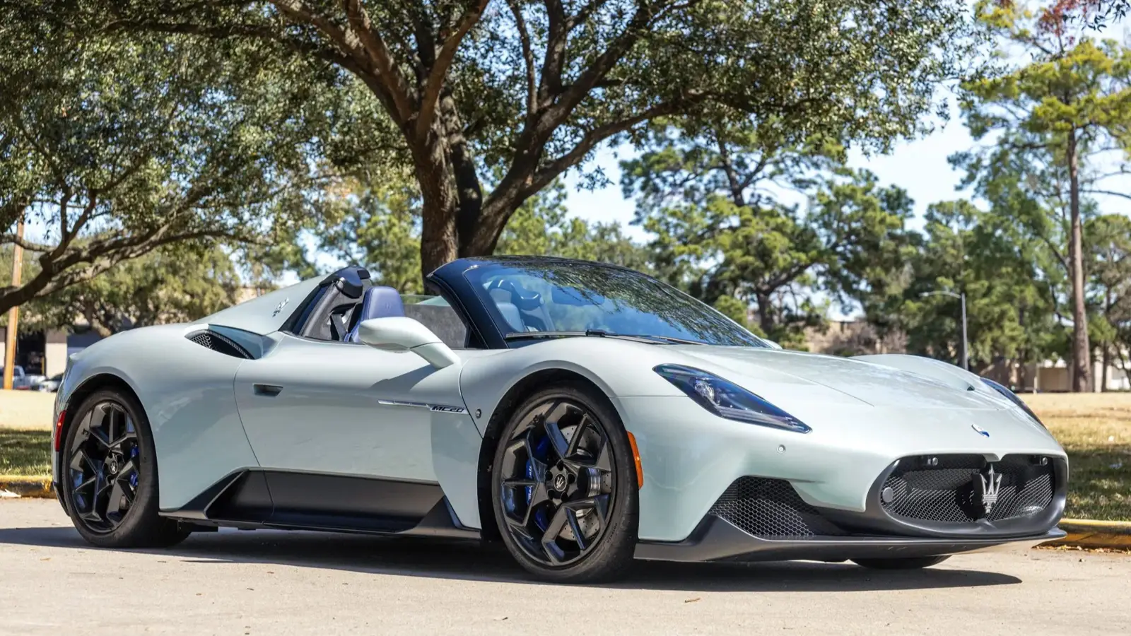 This example is finished in Aquamarina, a shade referenced in official launch materials as the three-layer Acquamarina color available through the Maserati Fuoriserie program. Paired with a black and blue interior, 20-inch Birdcage wheels, and blue brake calipers, the specification closely reflects configurations seen in factory presentations, with the build sheet provided by the seller confirming the equipment.