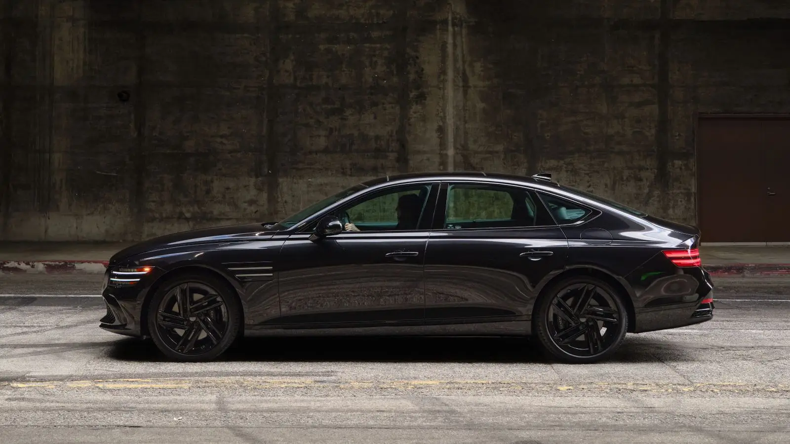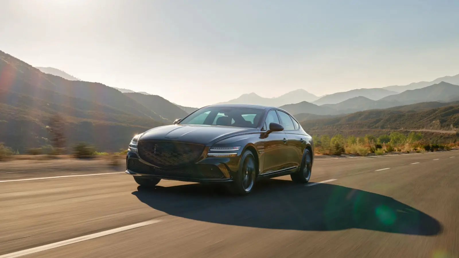 The front end features Genesis’ signature grille with chrome detailing and the winged emblem mounted on the hood. A full spread of LED lighting is standard, along with functional side air curtains. The sedan rides on 18-inch aluminum alloy wheels fitted with Michelin Primacy All Season tires (245/50 R18). Suspension consists of MacPherson struts up front and a multi-link setup at the rear.
