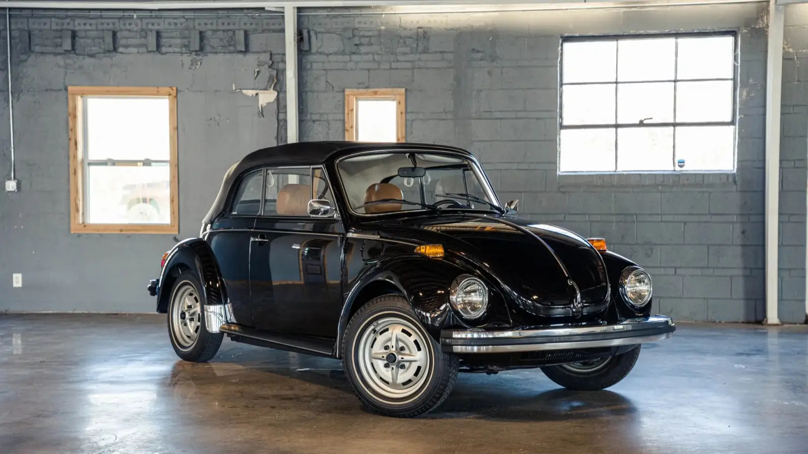 A 1979 VW Super Beetle Convertible with 39 miles is listed on Bring a Trailer, featuring a rare triple-black background and documented history. Explore details.