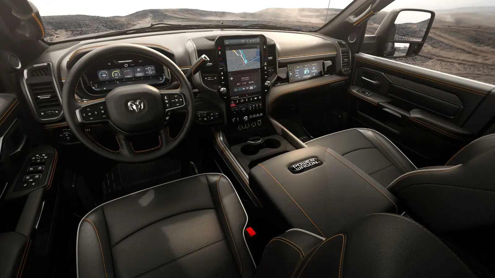 The interior receives an equally distinctive treatment. The cabins feature premium Natura Plus Black leather bucket seats with embossed Power Wagon or Rebel logos. One of the most noticeable design details is the Copperhead Orange contrast stitching that runs across the dashboard, doors, steering wheel, grab handles and even the column shifter. A unique alloy center console badge and a Mopar lockable console storage compartment add both exclusivity and practicality.