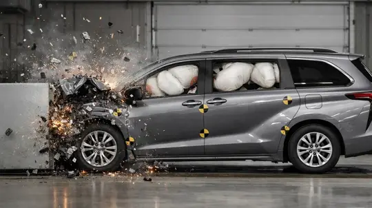That is where minivans ran into trouble. And the problems were not identical from one model to another, which suggests this is not a single flaw repeated across the class, but a broader mix of engineering shortcomings. In the Honda Odyssey, IIHS recorded the weakest outcome of the group: the rear passenger showed a moderate risk of chest injury and a likely risk of injury to the head or neck, while the dummy’s head moved close to the front seatback. In the Toyota Sienna, the picture was different. Head and neck risk was lower, but the seat belt performance raised concerns, with the shoulder belt moving too close to the neck and the lap belt shifting from the pelvis onto the abdomen. That is one of the more troubling crash scenarios because it can increase the risk of abdominal injury.