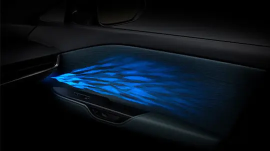 Toyoda Gosei reports on Dynamic Shadowy Illumination, a new interior lighting system with moving patterns, introduced for the Lexus RZ electric vehicle.
