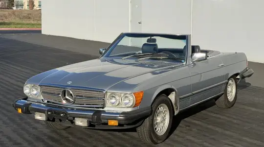 A 1980 Mercedes-Benz 450SL in Silver Blue Metallic with a V8 engine and dual-roof setup has been listed for sale on Bring a Trailer, highlighting a late example of the R107 series.