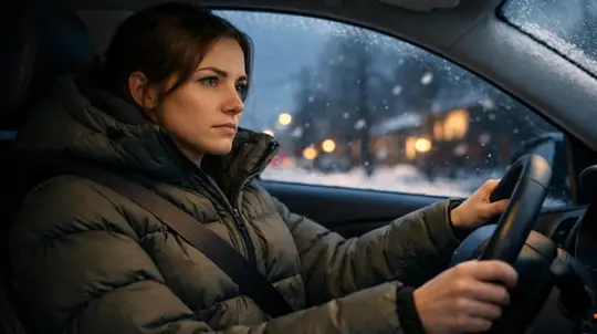 There is no separate official statistic directly showing whether an adult is safer driving in a winter jacket or without one. But another fact is clear: in a car, safety depends first on how the seat belt works and whether clothing interferes with control of the vehicle.