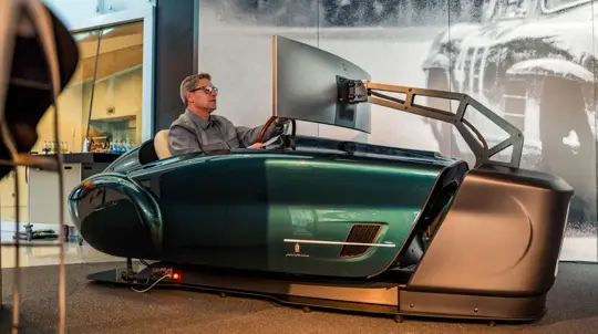 The key feature lies in the use of digital twins from the museum’s own collection. These are not stylized interpretations, but precise virtual recreations that replicate the behavior of the original vehicles. The setup combines a cockpit inspired by classic sports cars with motion systems and audio feedback to convey acceleration, braking forces, and vehicle dynamics.